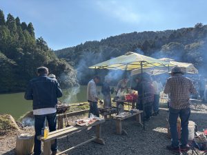 11月16日 上野の棚田で収穫祭 上野の棚田で令和7年度「とったとった」収穫祭が行われ、棚田オーナー、オーナー希望者などが参加しました。 当日は、天候にも恵まれ、参加者はバーベキューを楽しみながら交流を深めている様子でした。